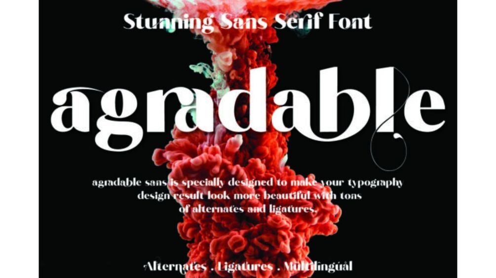 Agradable is an incredibly stylish and cool sans serif font. It is PUA encoded which means you can access all of the glyphs and swashes with ease!